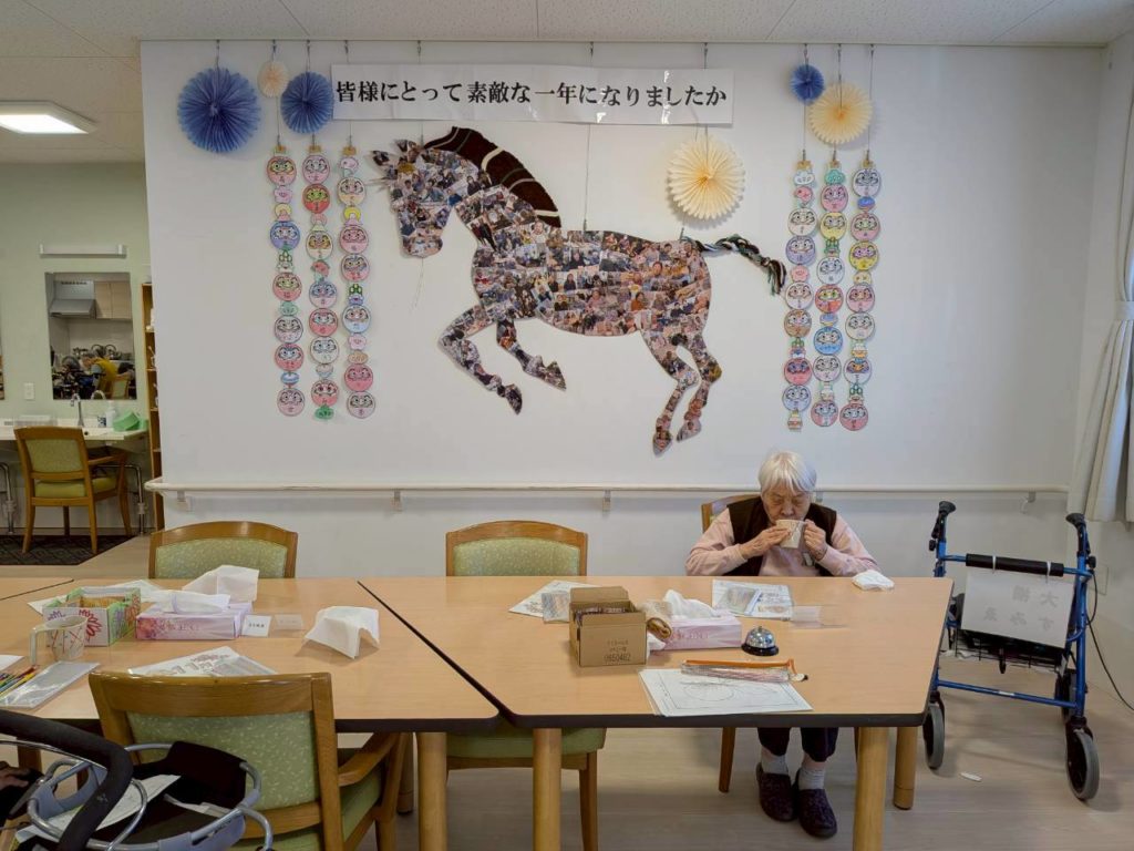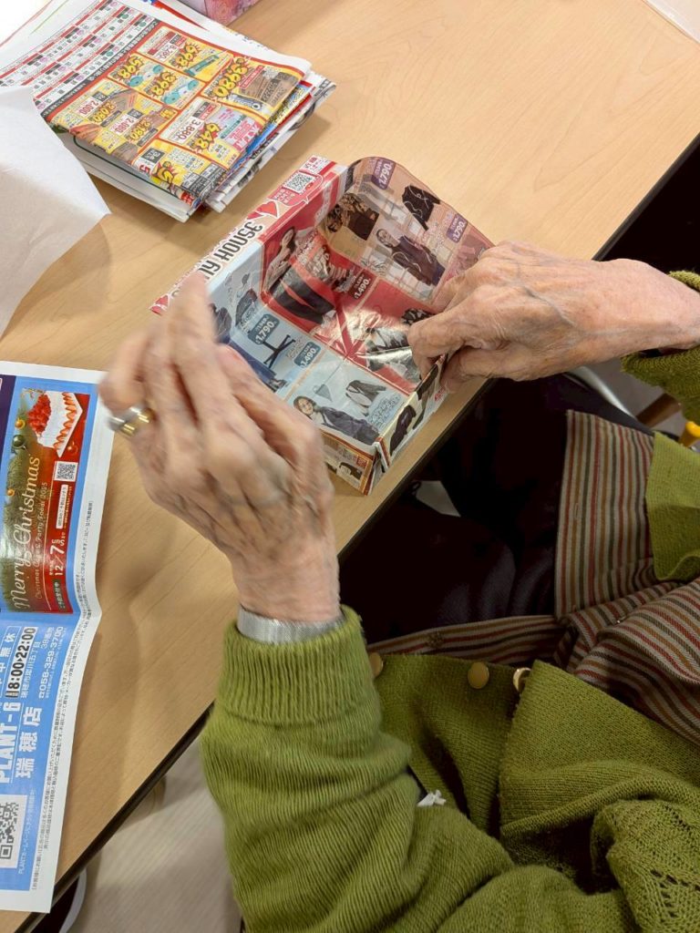 なかには、テレビを見ている方や自分で購入されている本をされたり、チラシでゴミ箱を折ってくださる方もみえます。