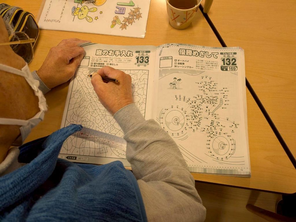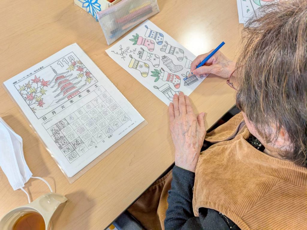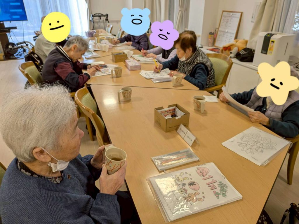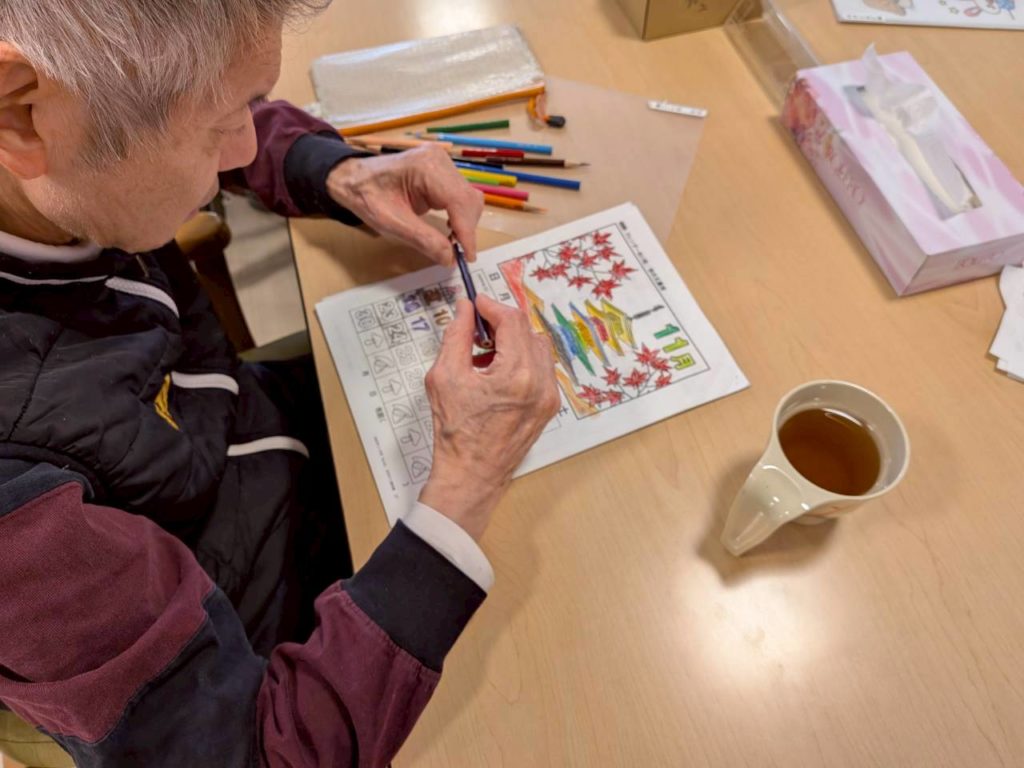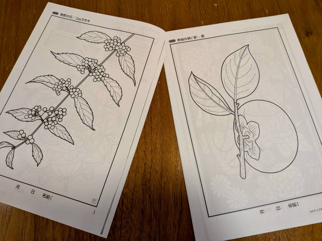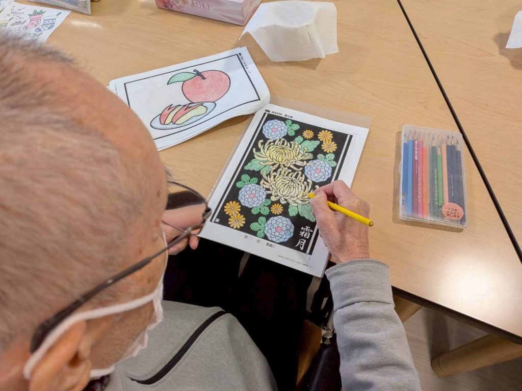 冊子には、塗り絵や脳トレプリントが入っているので好きなのから取り組んでもらっています。